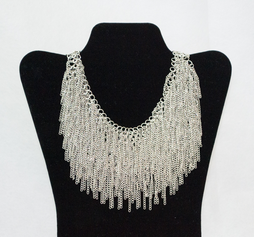 This multi-fringe link neck is great to dress up tank tops, or dresses, the fringes are all around the necklace giving lots of flawless details from all angels.