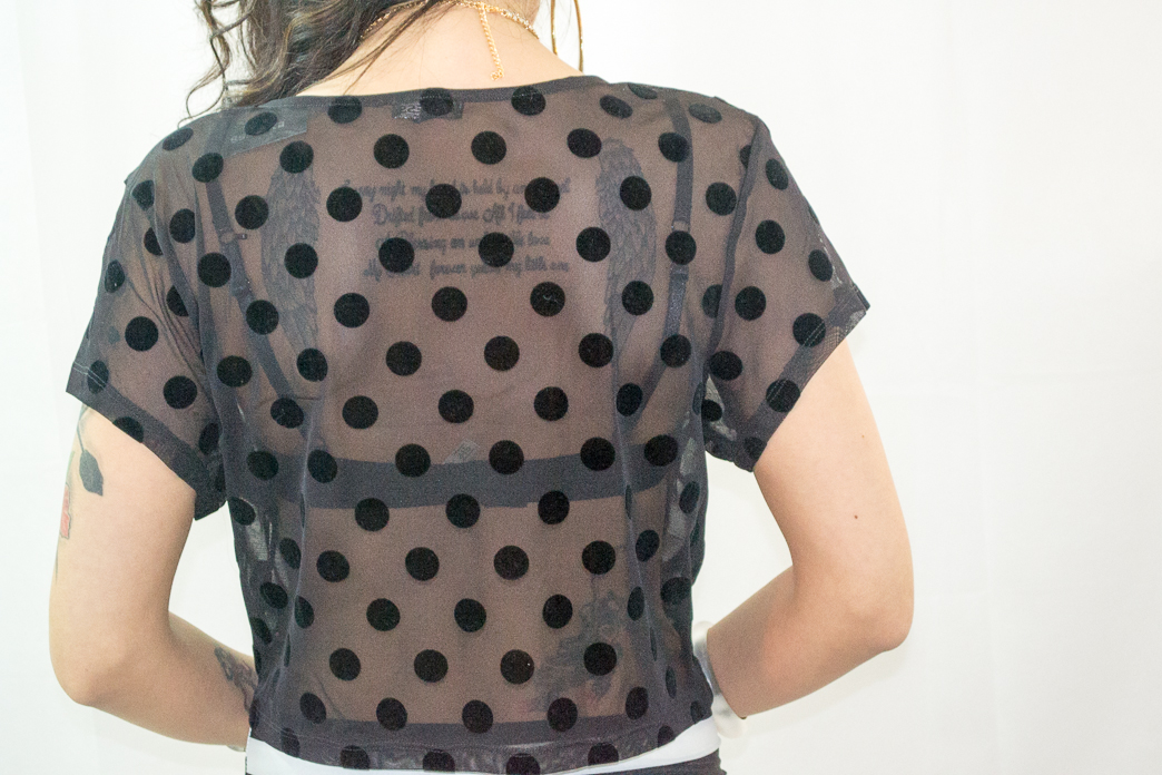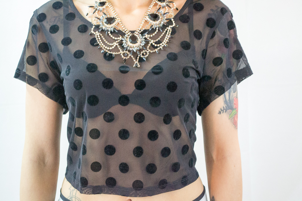 Playfully sexy and spot on trend-wise, this short and sheer tee keeps you feeling good with fun pattern and soft, velvety flocking. Layer it over a simple cami, or try a cropped tank underneath to leave a little midriff exposed.