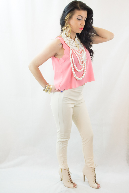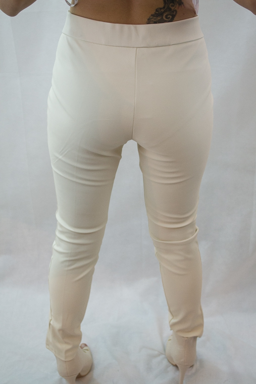 THESE HIGH WAIST CREAM FAUX LEATHER PANTS WITH ANKLE ZIPPERS. PANTS ALSO HAS LINING.